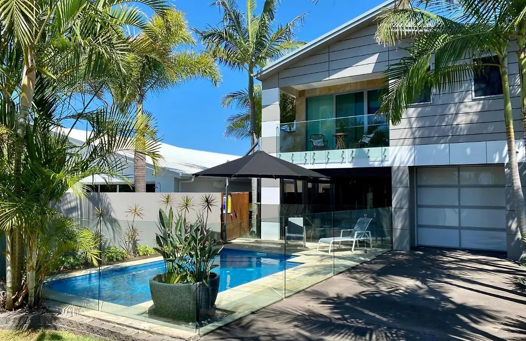 The Palm - Beachside Home With Heated Pool, Cinema & Games Room Mudjimba is located 2.5 km from the Sunshine Coast Aqua Fun Park and boasts a dining table provided on a terrace for a pleasant stay. Offering a private swimming pool, this 2-bedroom villa invites guests to visit Aqua Fun Park, located about 10 minutes away by car.